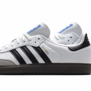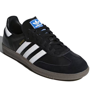 Born on the pitch, the Samba is a timeless icon of street style. This silhouette stays true to its legacy with a tasteful, low-profile, soft leather upper, suede overlays and gum sole, making it a staple in everyone's closet - on and off the pitch.